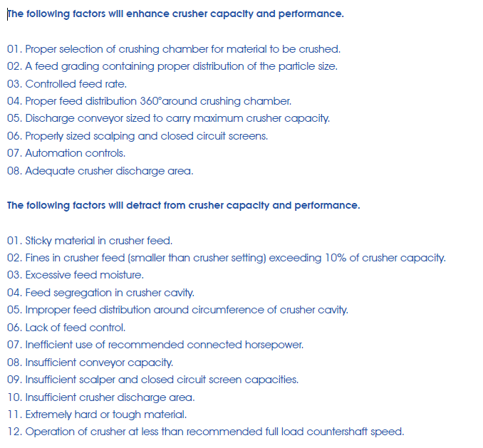 Cone crusher capacity charts are developed for use as an application tool to properly utilize the LCH crusher’s capabilities. The capacity figures shown apply to material weighing 1600kg per cubic meter. The crusher is one component of the circuit. As such, its performance is in part dependent on the proper