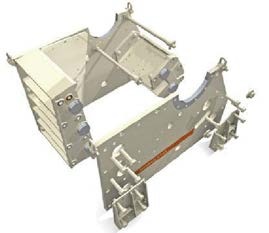 A uniquely modular, non-welded frame construction is a state-of-the-art design with two hot-rolled steel side plates joined to high-quality cast steel frames through robust, precision machined bosses secured with bolts. The pitman is made of high-quality cast steel and is propelled by two massive cast flywheels. A verylarge eccentric shaft forging and four large spherical roller bearings that are all of the same size ensure the greatest reliability. The grease-lubricated bearings are kept free from contamination by means of wellproven labyrinth seals. The single piece cast steel frame bearing housings ensure a perfect fit to the crusher frame. They also prevent unnecessary loads to the frame bearings.